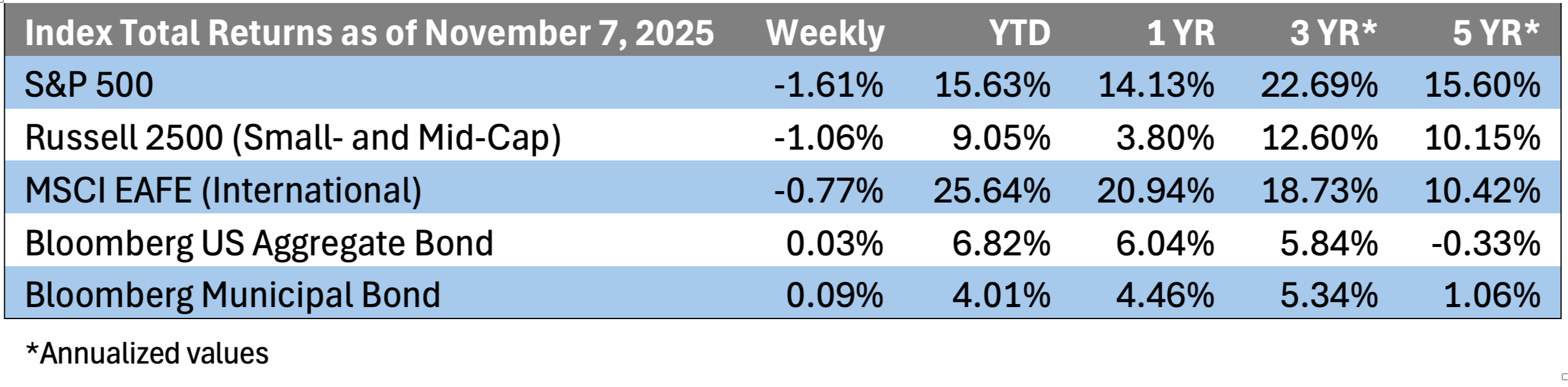 - We would be receiving October updates on consumer and producer price inflation, but the shutdown continues to halt most government data releases. It’s unclear when the backlogged data will be made available if and when the government ever reopens.