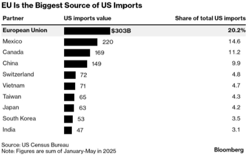 [2] Mackrael and Andrews. “Trump and EU Reach Tariff Deal, Avoiding Trade War.” The Wall Street Journal, 27 July 2025, https://www.wsj.com/economy/trade/trump-says-he-has-a-tariff-deal-with-european-union-avoiding-trade-war-3ca72c5d?mod=djem10point